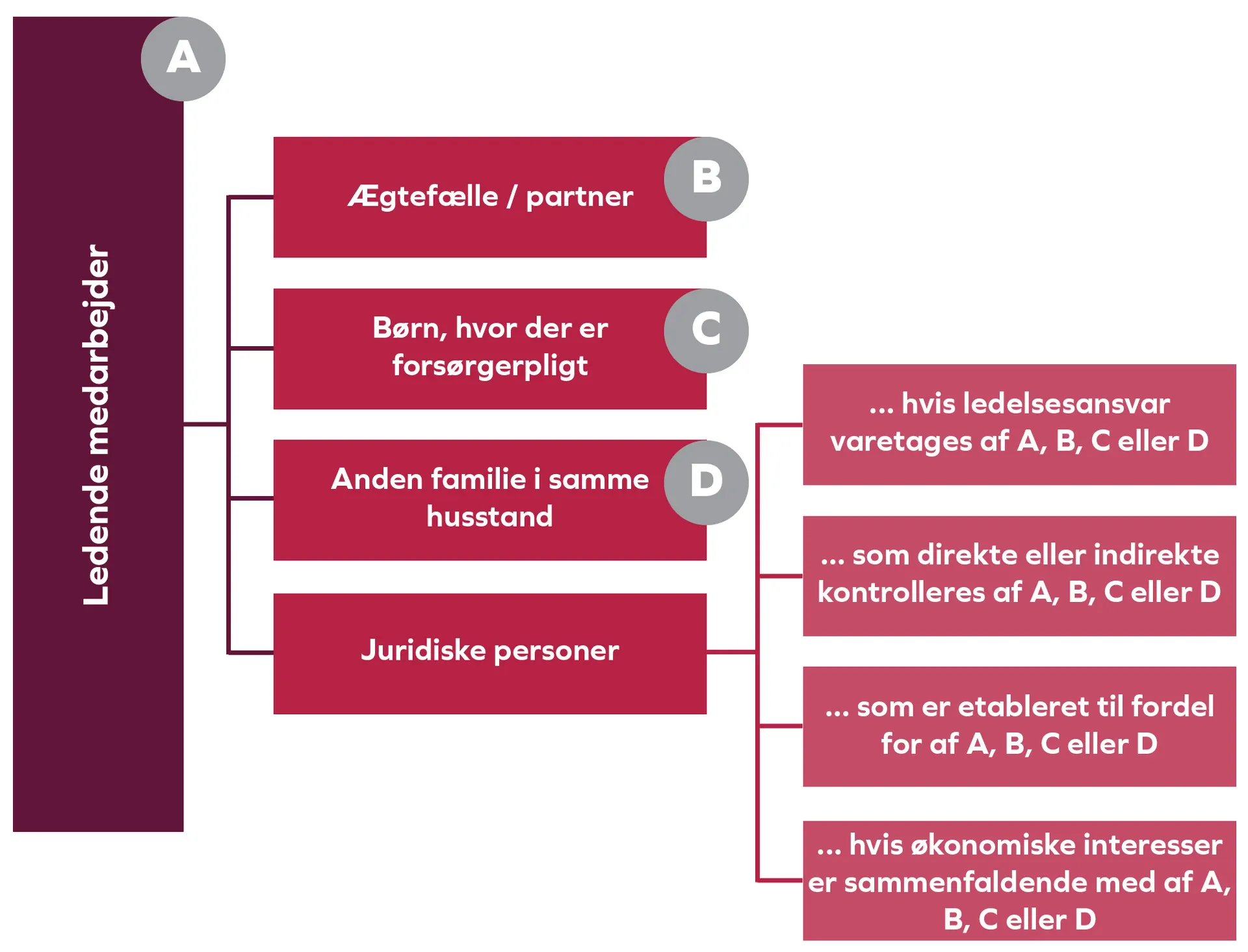 Nedenfor beskrives, hvilke juridiske personer der er nærtstående til ledende medarbejdere efter markedsmisbrugsforordningen.