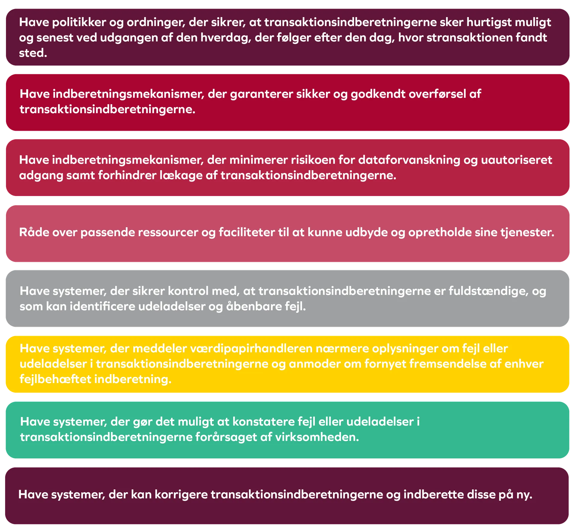 Virksomhed som godkendt indberetningsmekanisme (ARM) består i at indberette fuldstændige og nøjagtige oplysninger om transaktioner (herefter transaktionsindberetningerne) til Finanstilsynet, jf. artikel 26 i MiFIR .