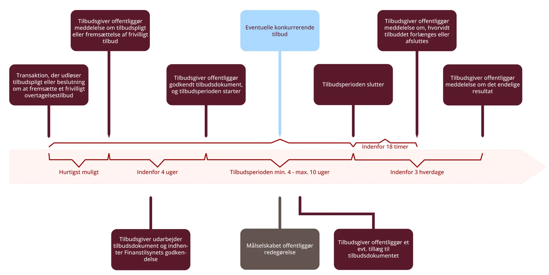 Finanstilsynet skal godkende tilbudsdokumenter rettet til de øvrige aktionærer i målselskabet. Det gælder både ved pligtmæssige og frivillige tilbud.