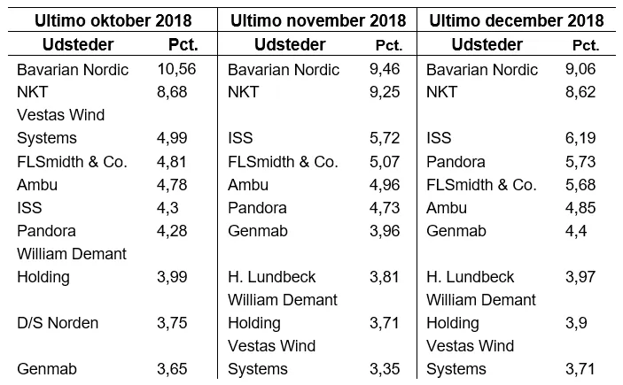 Ved udgangen af december var der samlet set korte nettopositioner i Bavarian Nordic svarende til 9,06 pct. af selskabets udstedte aktiekapital, se tabellen nedenfor. Det er et fald på 0,4 procentpoint i forhold til måneden før. NKT var den næstmest shortede aktie med korte nettopositioner svarende til 8,62 pct. af selskabets udstedte aktiekapital. Det er et fald på 0,63 procentpoint i forhold til måneden før.