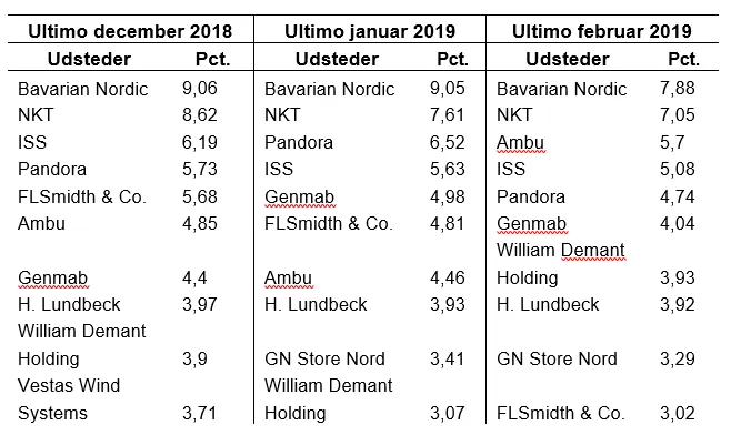 Ved udgangen af februar var der samlet set korte nettopositioner i Bavarian Nordic svarende til 7,88 pct. af selskabets udstedte aktiekapital, se tabellen nedenfor. Det er et fald på 1,17 procentpoint i forhold til måneden før. NKT var den næstmest shortede aktie med korte nettopositioner svarende til 7,05 pct. af selskabets udstedte aktiekapital. Det er et fald på 0,56 procentpoint i forhold til måneden før.