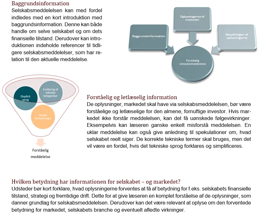Nedenfor følger tre tips, som udstedere kan holde sig for øje, når de skal offentliggøre oplysninger til markedet. Formålet med tippene er at give læseren af selskabsmeddelelserne de bedste forudsætninger for at forstå dem.