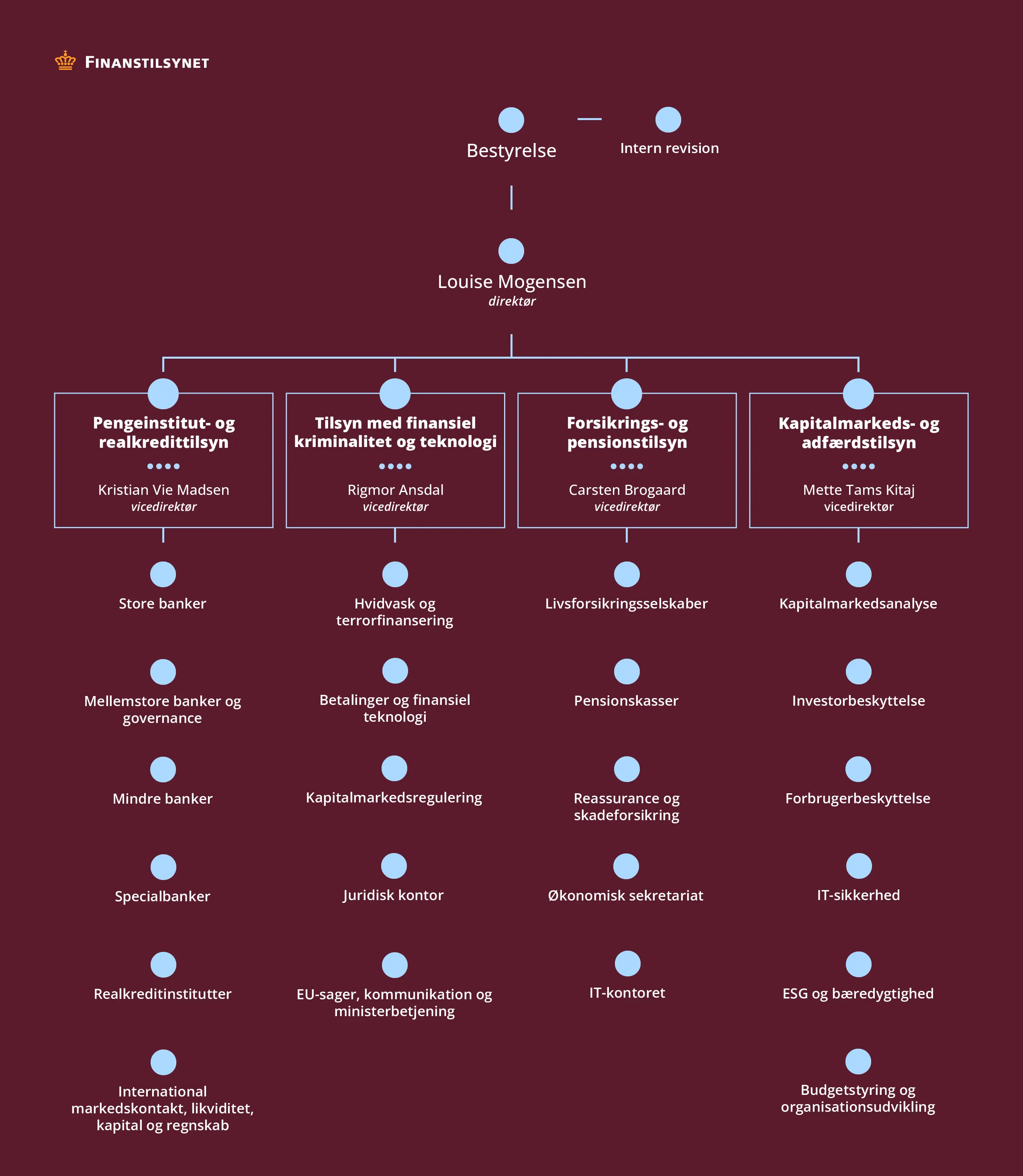 Intern revision er Finanstilsynets tredje forsvarslinje med fokus på Finanstilsynets ledelses- og operationelle processer.